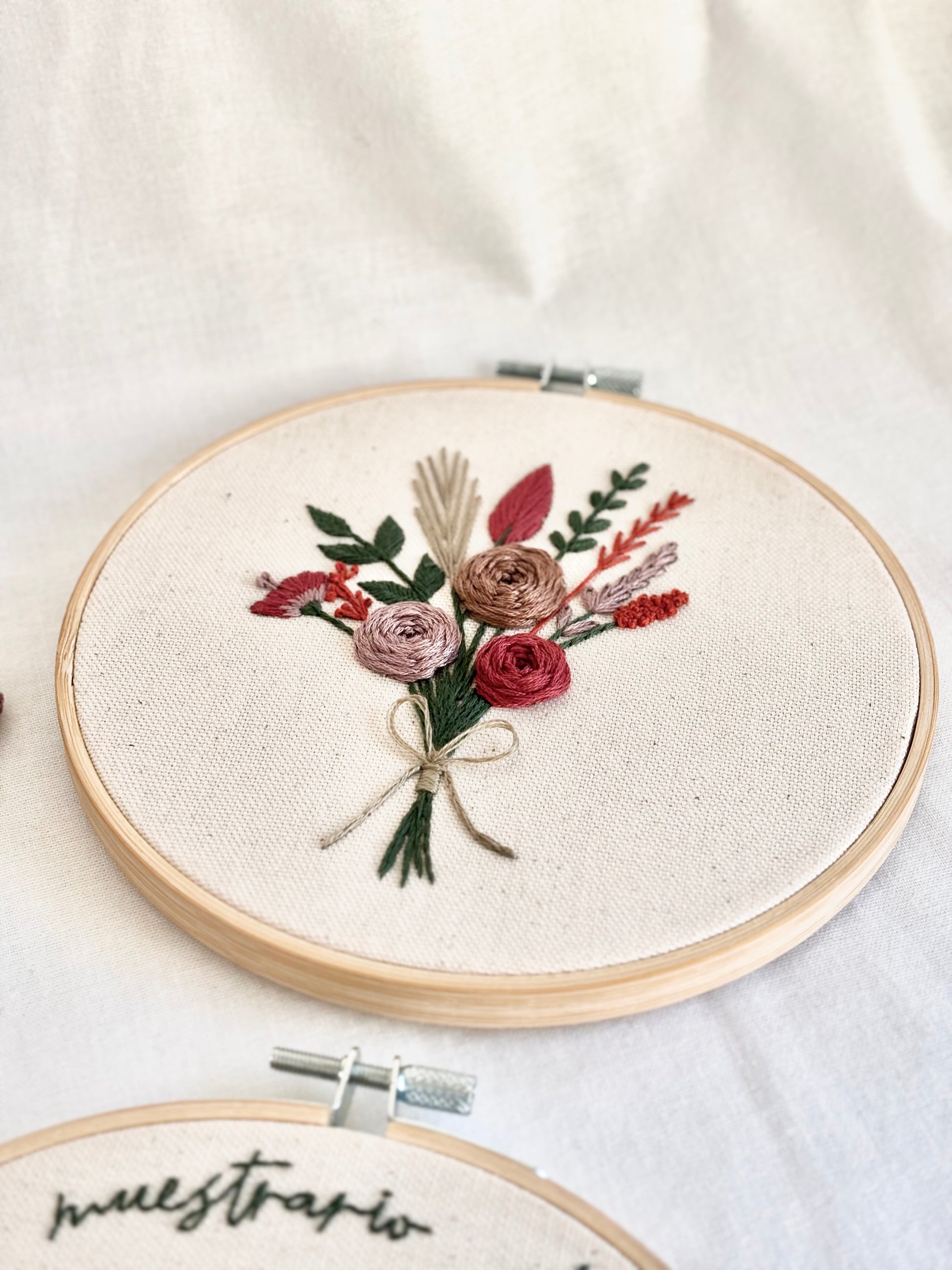 Kit de bordado a mano para principiantes dúo con muestrario de puntadas y ramo floral - Kit DIY completo
