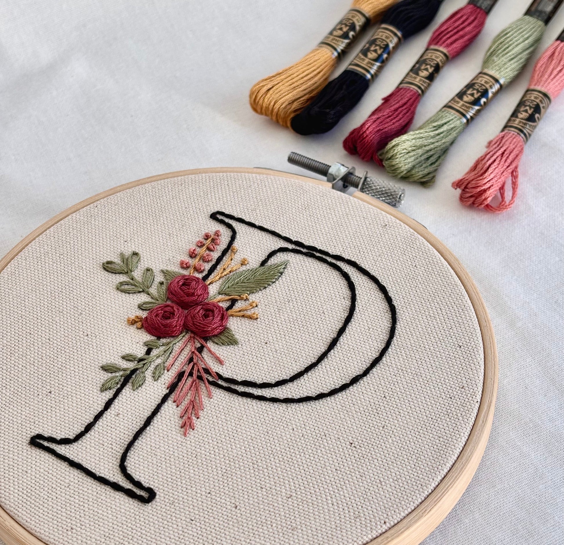 Kit de Bordado DIY – Kit de Bordado a Mano con Letra Floral